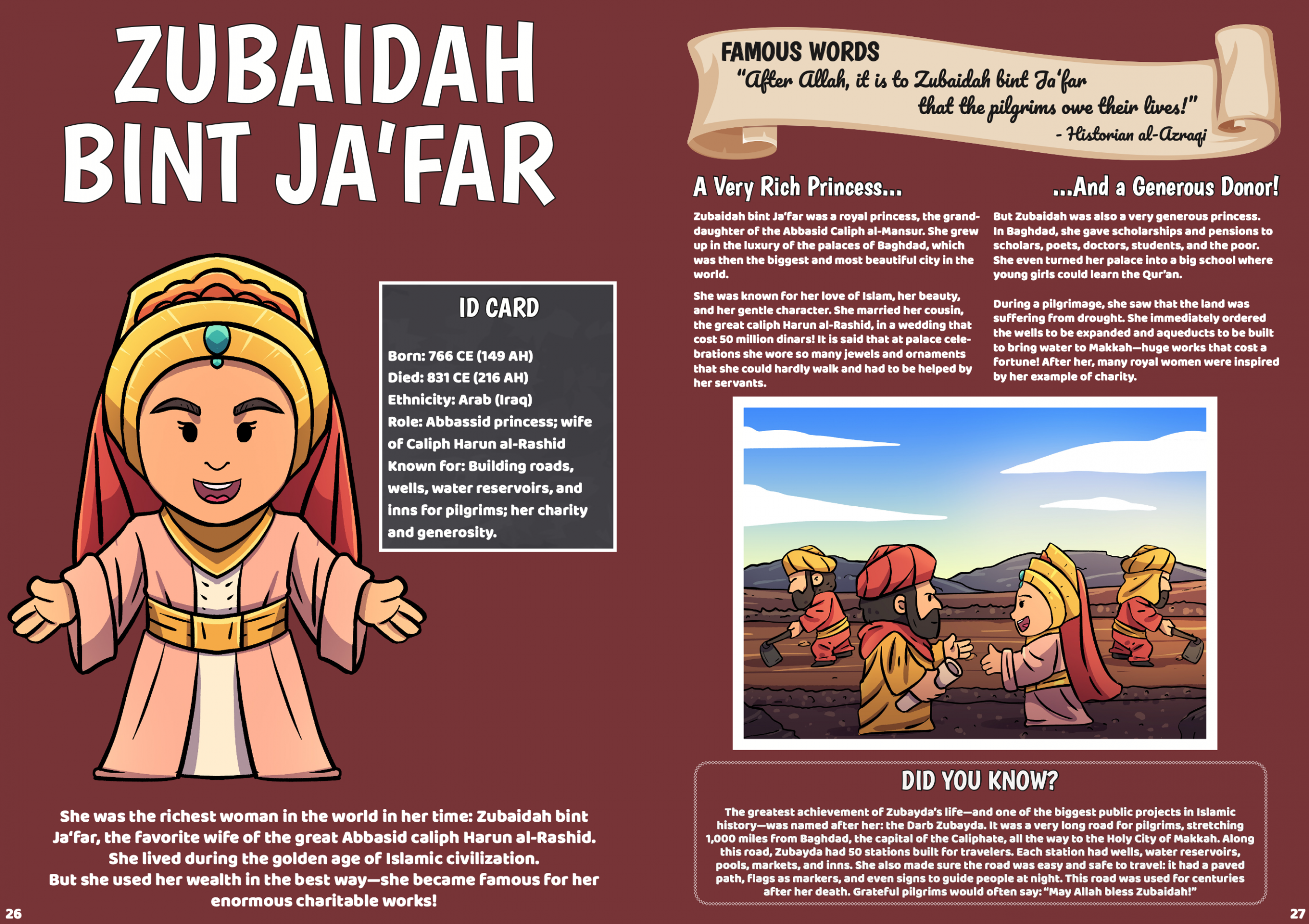 Wives, daughters, and Companions of the Prophet ﷺ, as well as scholars, princesses, and warriors — from every time and place — this book shares the amazing stories of Muslim women with extraordinary lives!